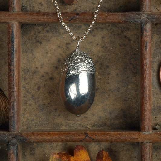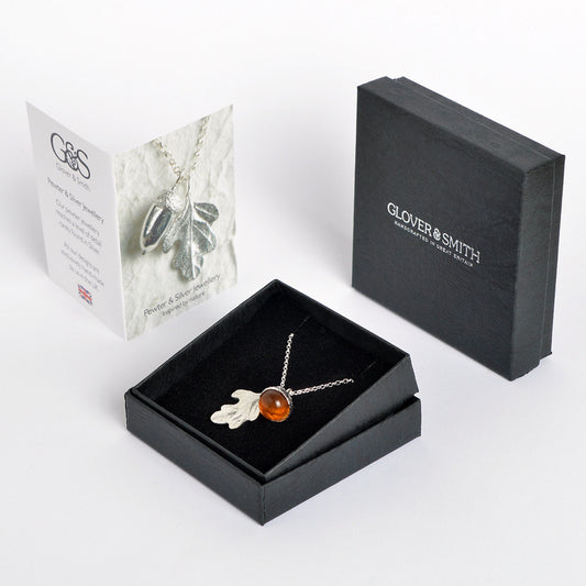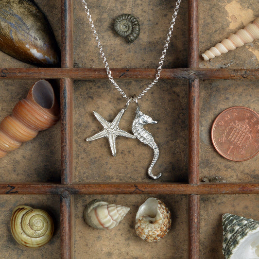 Our English pewter necklaces on Sterling silver chains feature organic oak leaves and acorns, hawthorn and ginkgo leaves. Bees and dragonflies found in British woodlands, and starfish, seahorses and ammonites found on the beach. Great gifts for her.