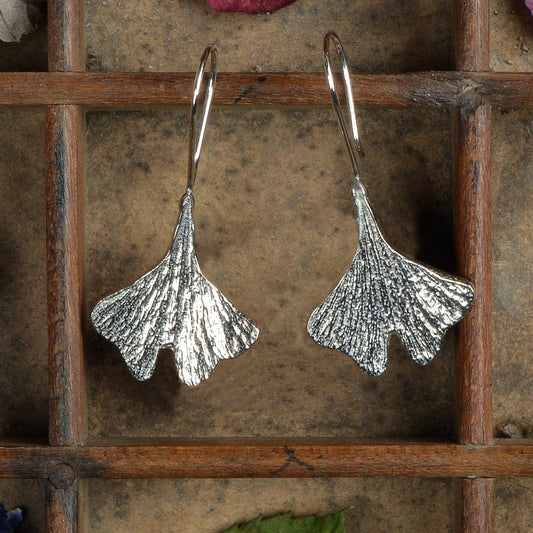Ginkgo Leaf Drop Pewter Earrings | Ginkgo Leaf Jewellery Gifts For Her