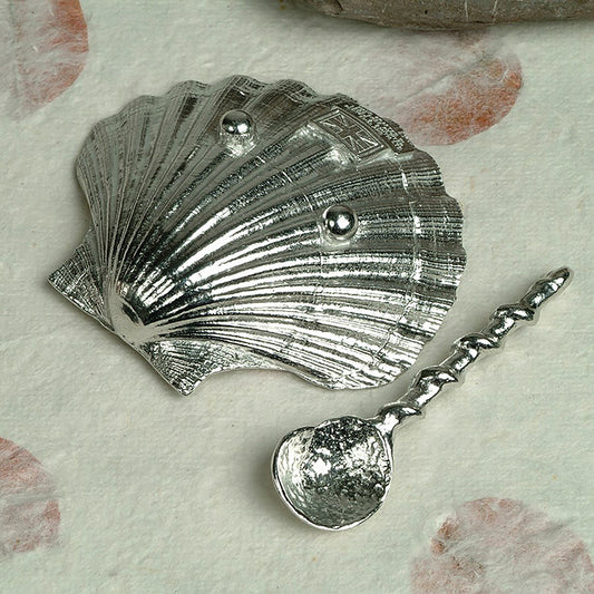 Scallop Shell Pewter Bowl And Spoon | UK Handmade Seashore Gifts