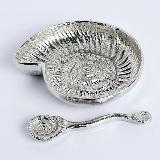 Ammonite Fossil Pewter Bowl And Spoon | Tin Anniversary Gift