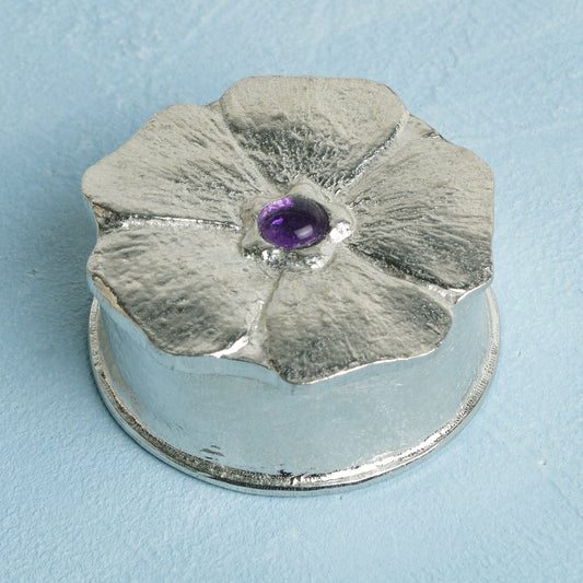 A collection of handmade pewter trinket boxes, keepsake boxes many of which can be personalised by engraving. Our designs feature sculptures of British wildlife, animals and birds. Others use semi-precious stones such as amber, turquoise garnet and amethyst. All made by Glover and Smith in Britain in our own studios.