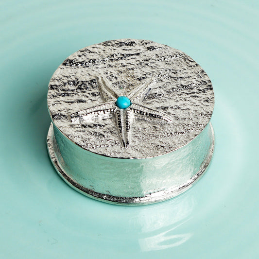 Starfish Pewter Trinket Box With Turquoise Stone - UK Handmade Gifts