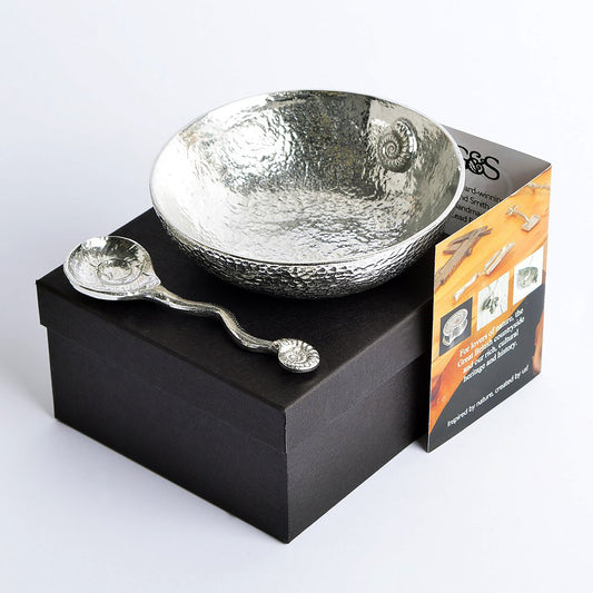Cuenco y cuchara de peltre redondo fósil de amonita - Regalos del décimo aniversario
