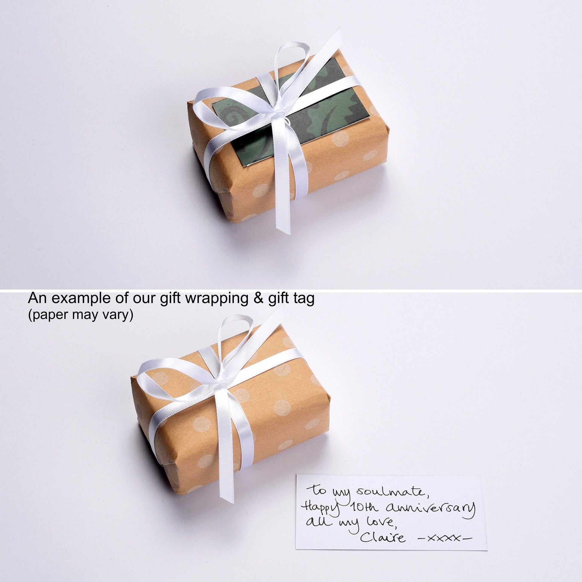 To activate the gift wrapping and gift message options, add the oak cufflinks to your cart, then view your cart and select the gift wrap tick box underneath.