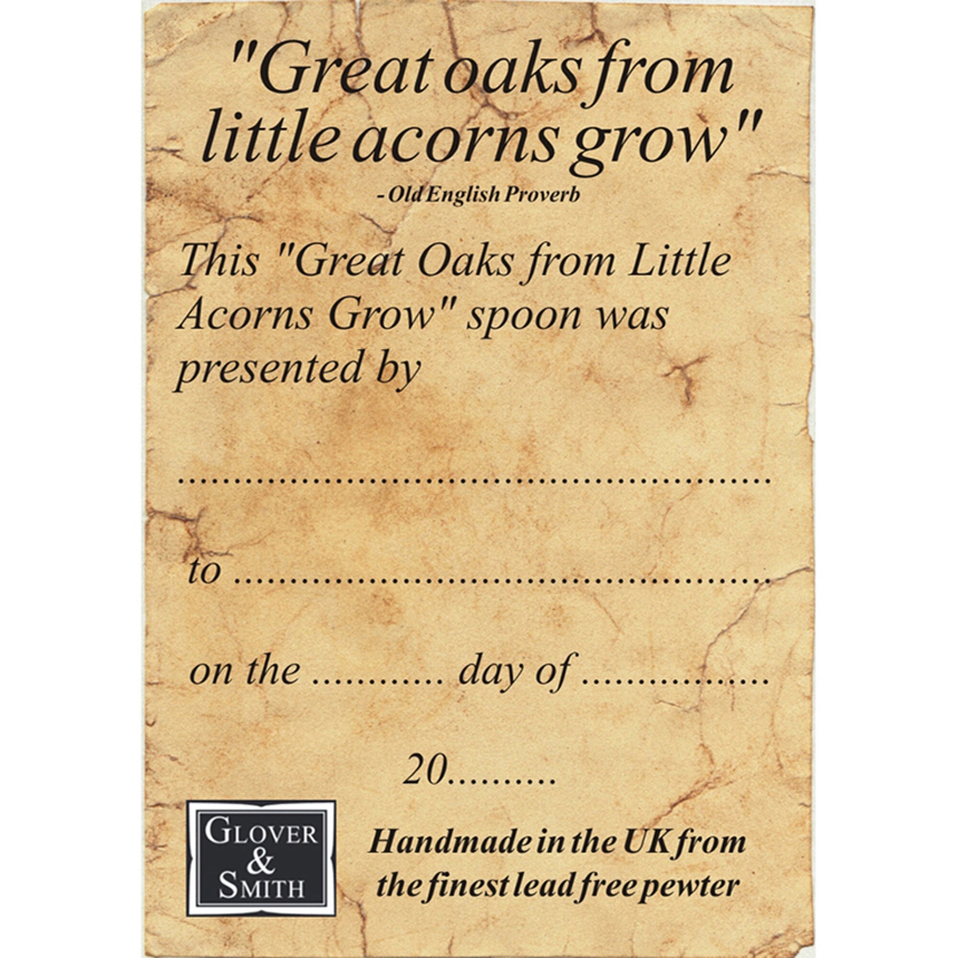 This is an engraved personalised version of our popular little acorns oak leaf Christening spoon gift. 'Great oaks from little acorns grow' (English proverb) is already engraved on the spoon with a plaque for your personalised message. A lasting keepsake for both the child and the family! A suitable Christening gift for both girls and boys.