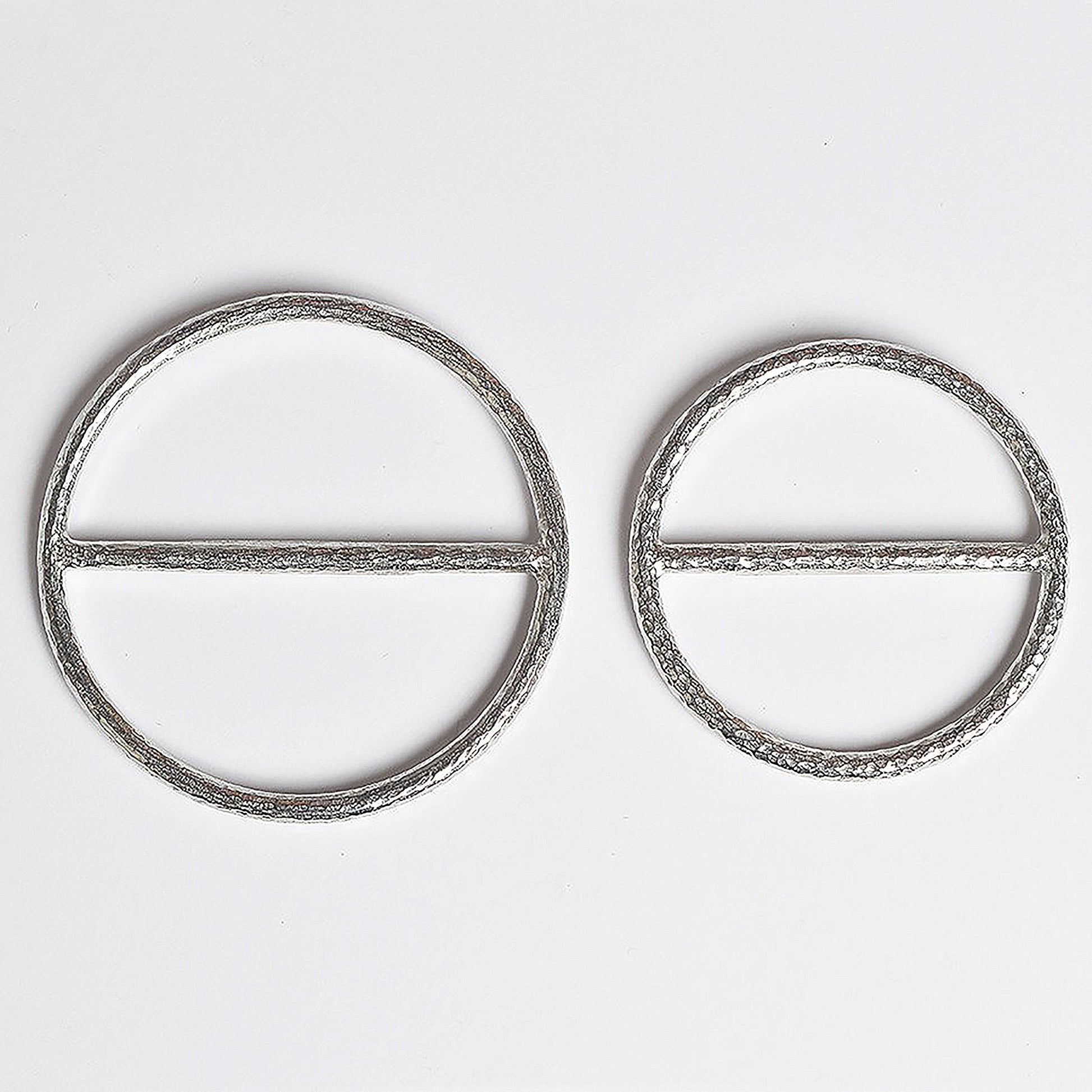 Each silver coloured plain small scarf ring is 5.6 cm (2.2 inches) in diameter and is presented in a black gift box with a card to explain its use, all inside an organza pouch.